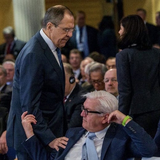 Critics have circulated pictures of Steinmeier fondly touching arms with Russian Foreign Minister Sergey Lavrov at the 2016 Munich Security Conference.